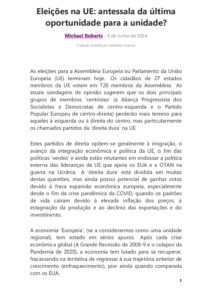 Eleições na UE: antessala da última oportunidade para a unidade? MICHAEL ROBERTS Eleições na UE antessala da última oportunidade para a unidade MICHAEL ROBERTS Eleições na UE antessala da última oportunidade para a unidade Data: terça-feira, 09/07/2024 - 17:10