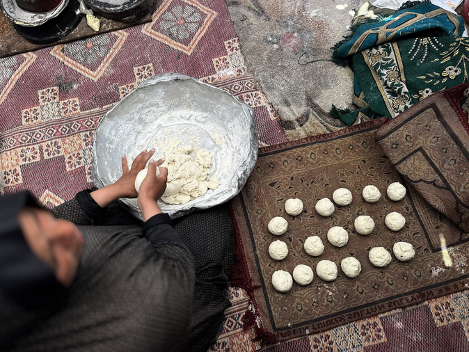 Começamos a sentir a profundidade da fome quando o padeiro Abu Hussein, conhecido por todos no campo, reduziu suas atividades. Costumava assar pão para dezenas de famílias por dia, incluindo a nossa – que não têm mais gás de cozinha ou eletricidade para assar em casa. Seus fornos a lenha ficavam ligados de manhã até a noite.
