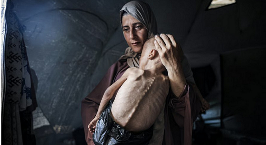 “Digam como salvar minha filha Rahaf da morte”, ela chorou. “Há uma semana ela não come nada além de uma colher de lentilhas por dia. Sofre de desnutrição. Não há tratamento, não há leite no hospital. Tiraram dela o direito de viver. Vejo a morte em seus olhos.”
