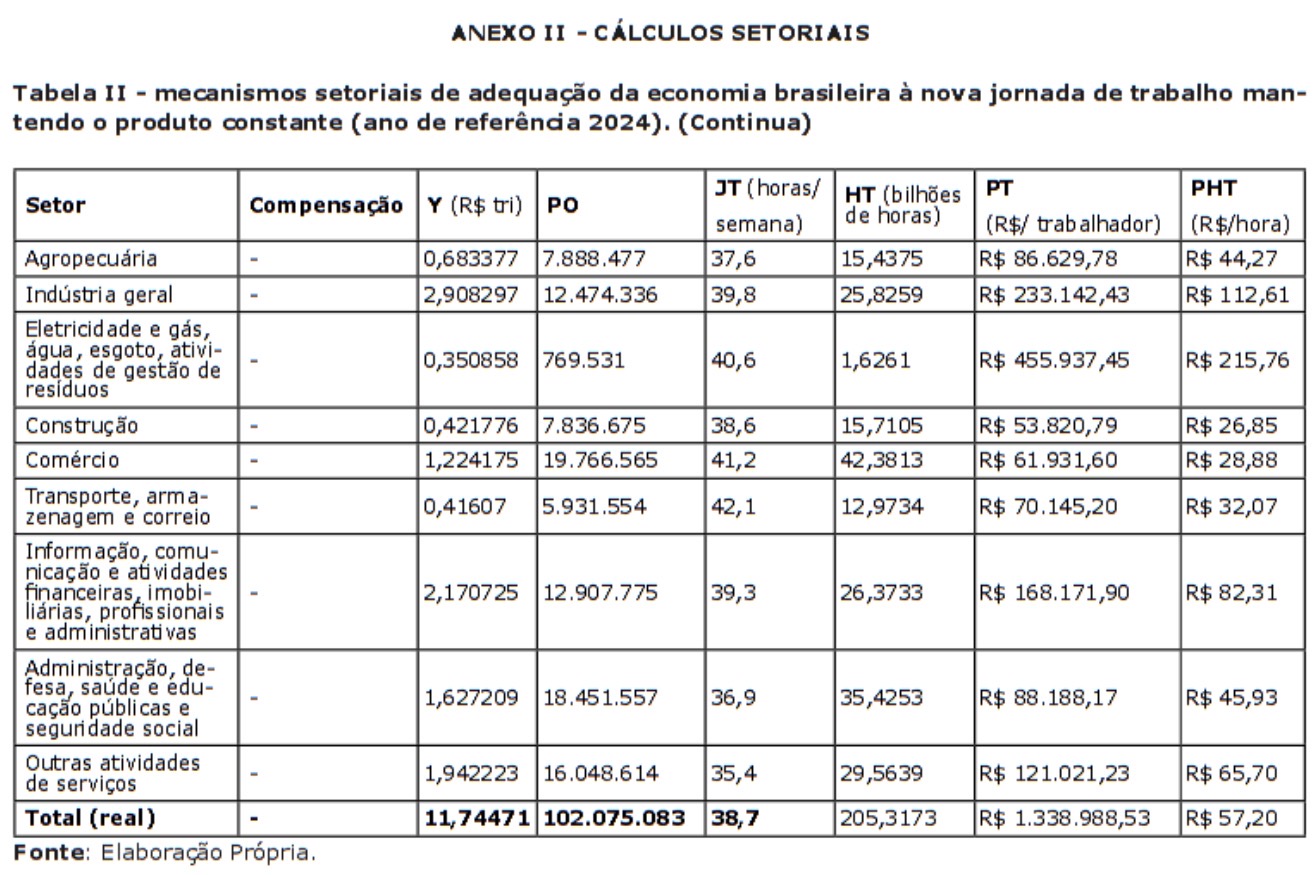 Com base em dados do Sistema de Contas Nacionais (SCN) e da PNAD Contínua (PNADc) para o ano de 2024, o exercício aqui apresentado permite dimensionar, setorialmente, quais seriam os impactos sobre produtividade, emprego e jornada de trabalho. Mais do que um exercício técnico, trata-se de uma intervenção no debate político, buscando deslocá-lo do terreno liberal e conservador para um terreno onde se reconheça que os efeitos econômicos da redução da jornada são, em larga medida, determinados pela escolha dos mecanismos de transição e, portanto, pela correlação de forças e pela vontade política.